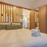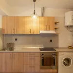 The apartment features an equipped kitchenette with a toaster and an oven.